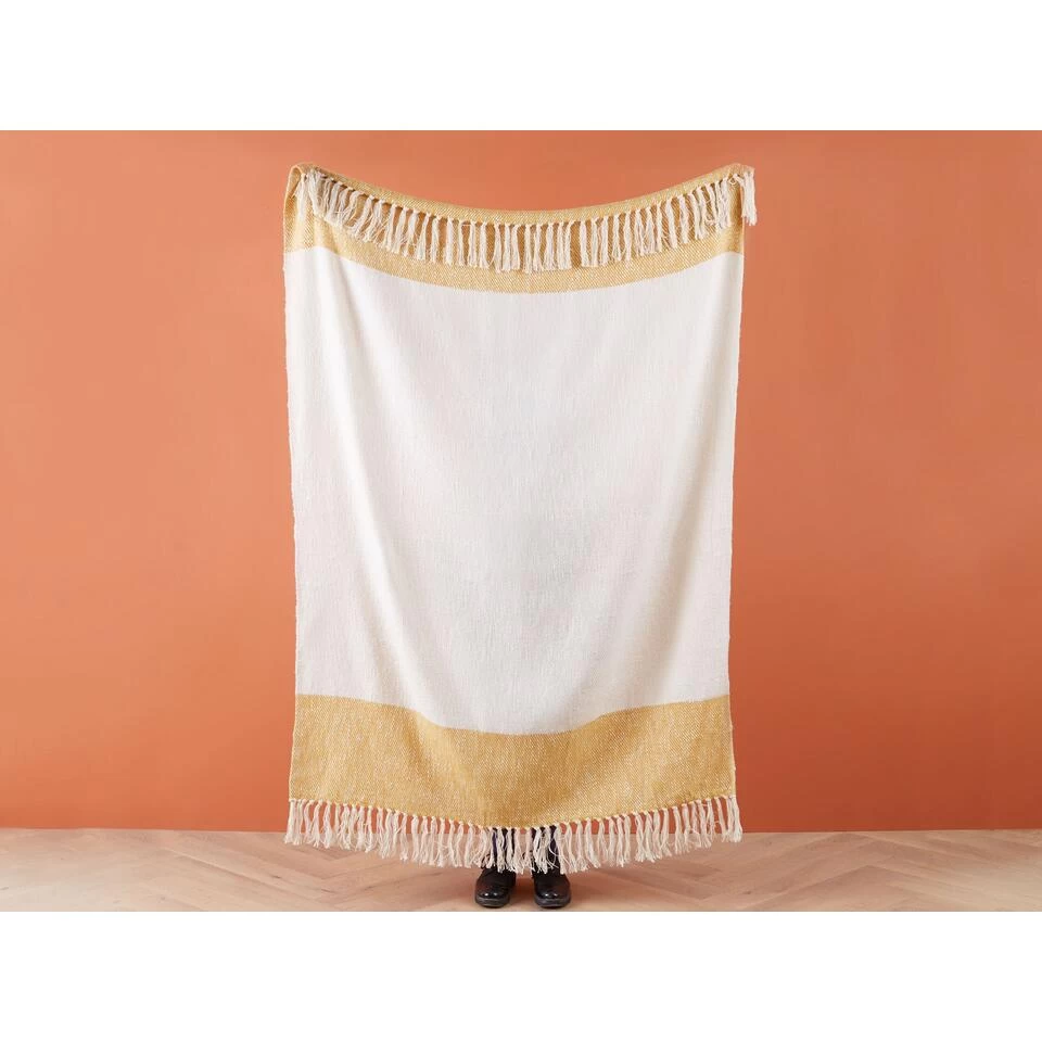 Decoratief plaid met kwastjes. Geef je interieur een finishing touch met deze zachte deken. De mix van aangenaam aanvoelend acryl en duurzaam katoen zorgt ervoor dat het jarenlang meegaat. De deken heeft een franjerand en een geometrisch patroon voor een charmante uitstraling. Dankzij de beige en oranje tinten past het meubel goed in veel interieurstijlen.