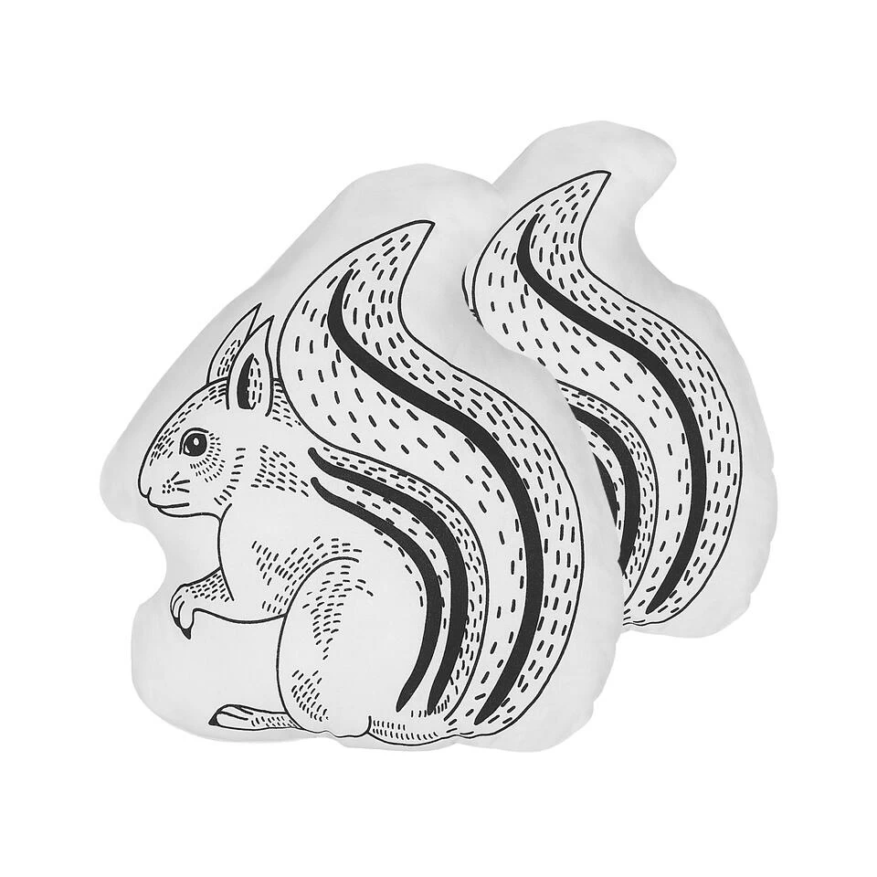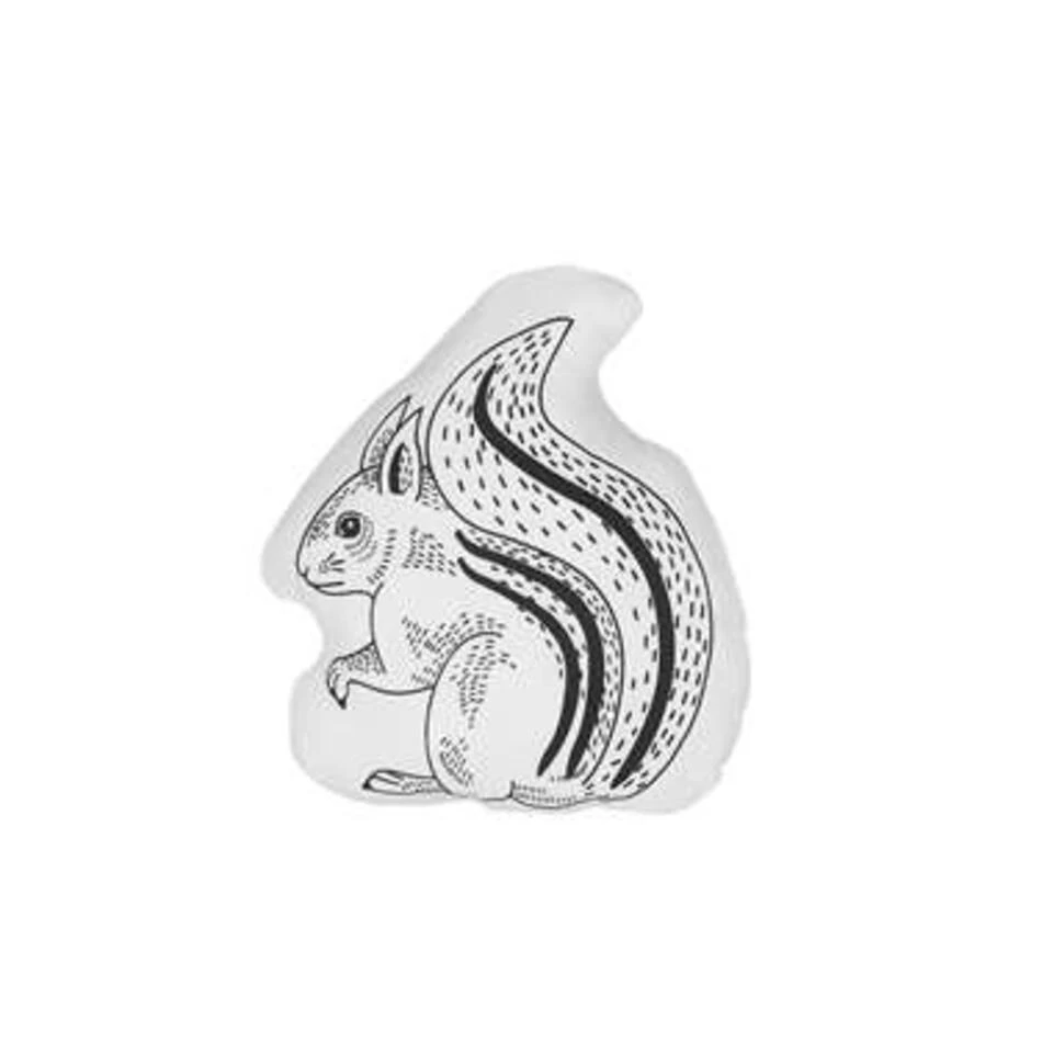 Wit en zwart sierkussen met eekhoornmotief. Dit schattige eekhoorntje is allesbehalve verlegen en zal zich prima thuisvoelen in jouw slaapkamer of kinderkamer. Het zwart-witte sierkussen van katoen met een polyester vulling in een trendy design is een ongecompliceerde en kwalitatieve mogelijkheid om je kamer net dat beetje extra te geven.