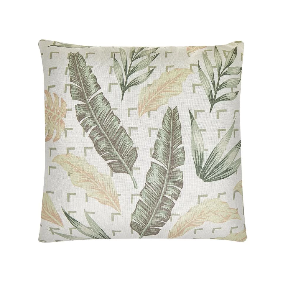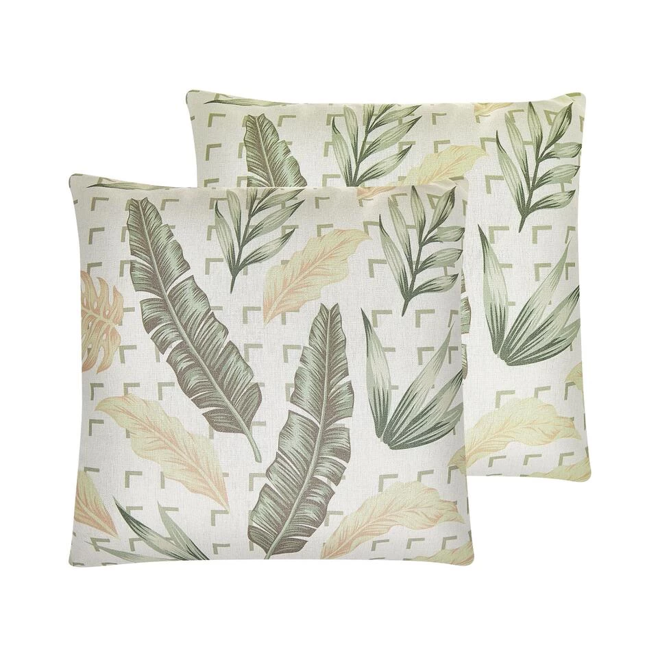 2 decoratieve sierkussens met bloemmotief. Verrijk je woonkamer met deze set van twee kussens, gedecoreerd met trendy bladpatroon. De hoes, gemaakt van zacht aanvoelend polyester, is afneembaar dankzij een ritssluiting. Gooi de kussens op je bank, fauteuil of bed en maak de look van je interieur helemaal af.