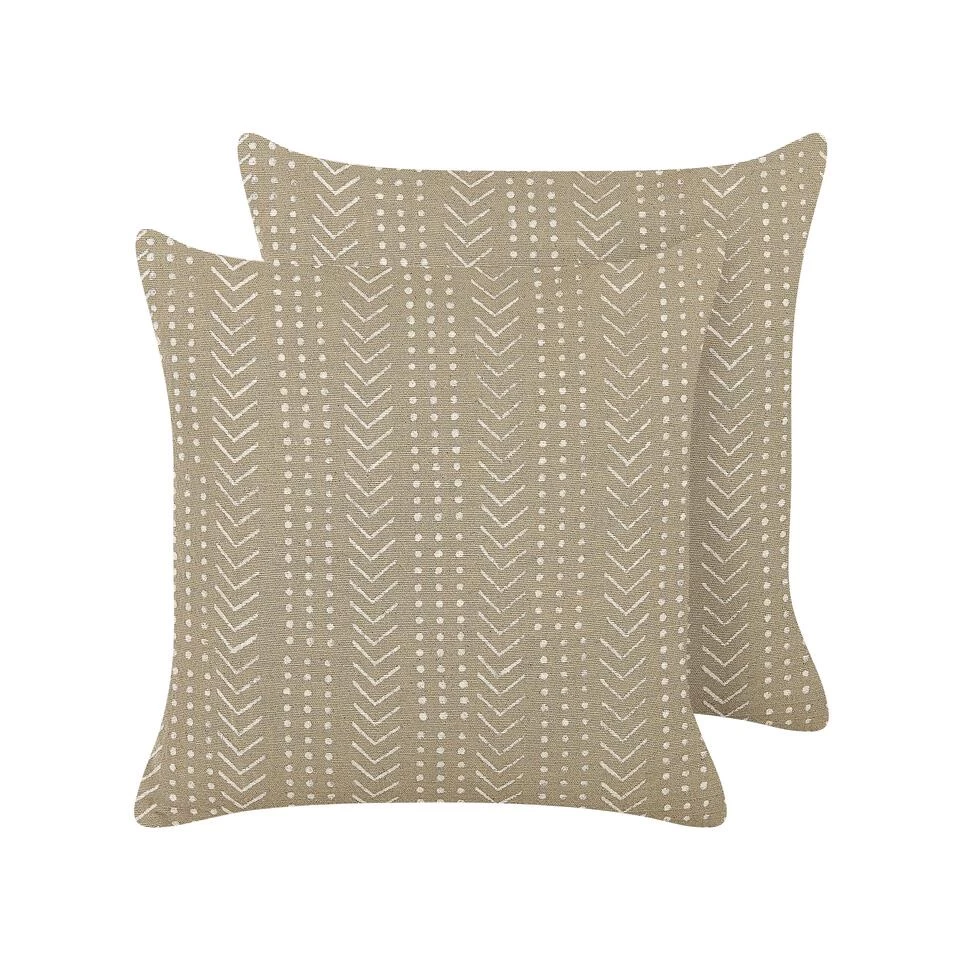 Boho geprinte kussens. Een nieuw sierkussen is de perfecte manier om je kleine ruimte een upgrade te geven. Met deze grijsachtige kussens kun je zowel je bed als je bank versieren en voeg je gemakkelijk comfort toe. Het heeft een dikke vulling en een afneembare hoes met ritssluiting. Het minimalistische, geometrische patroon is gemaakt met blokdruk techniek waardoor elk stuk uniek is.