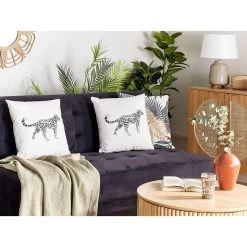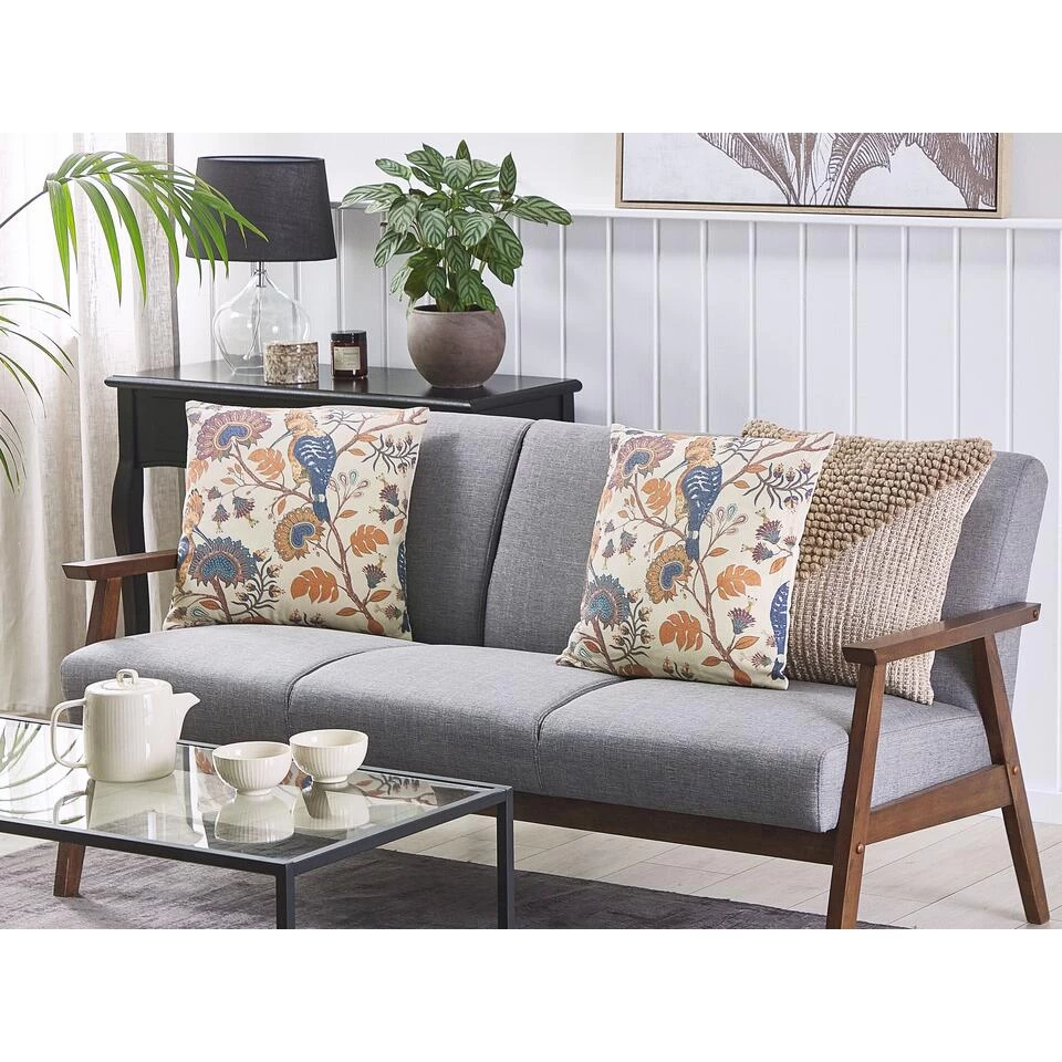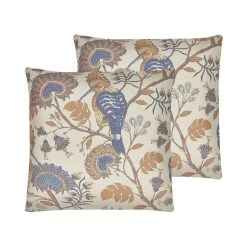 2 decoratieve sierkussens met veelkleurig bloemenpatroon. Verander het uiterlijk van je woonkamer en maak er een gezellige maar stijlvolle plek van. Een prachtig patroon, met een vogel en bladeren, maakt deze set van twee kussens tot een opvallende decoratie van elke kamer. Gebruik het om te dutten op een bank en geniet van zijn zachte structuur, gemaakt van hoogwaardig katoen en polyester.