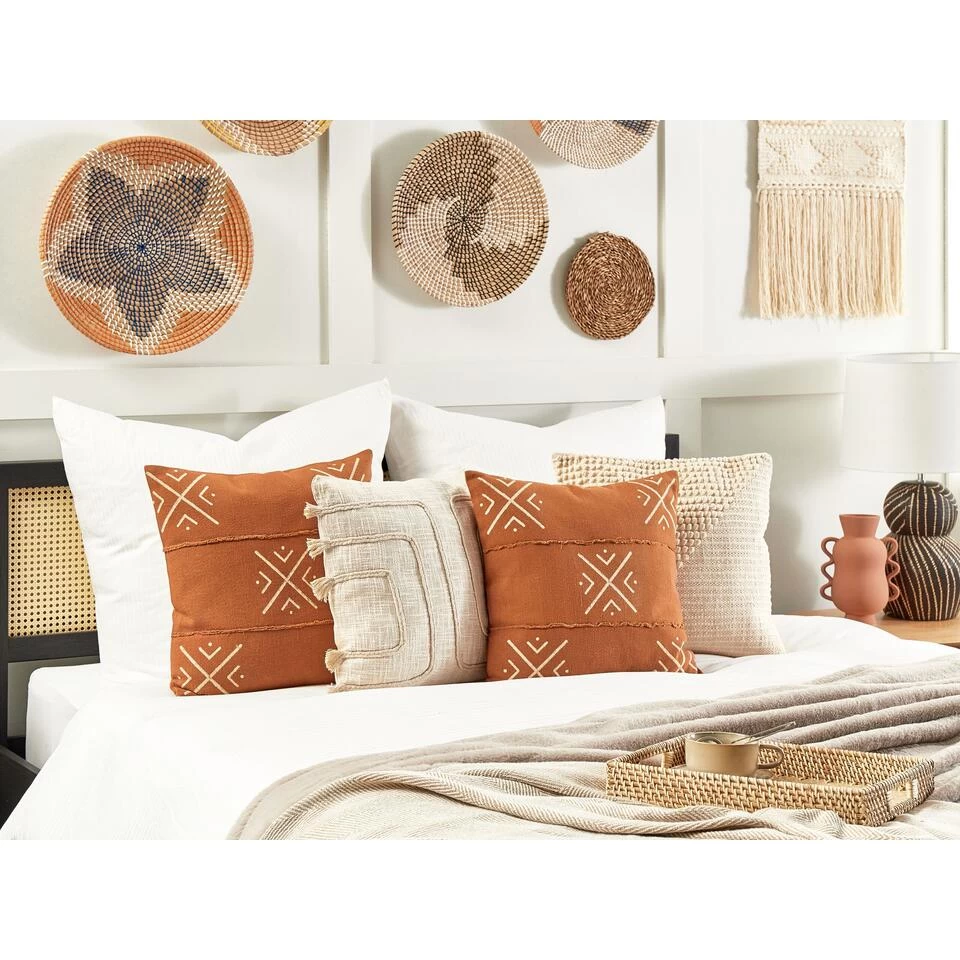Handgemaakte decoratieve sierkussens met geometrisch patroon. Creëer een gezellige plek om te ontspannen op je bank en versier hem met deze sierkussenset. Elke hoes is handgemaakt van katoen en wordt geleverd met een ritssluiting en een zachte polyester vulling voor extra comfort. Dankzij het geometrische patroon zijn de kussens een prachtig accentstuk voor een modern interieur, maar passen ze perfect bij elk boho- of traditioneel decor.