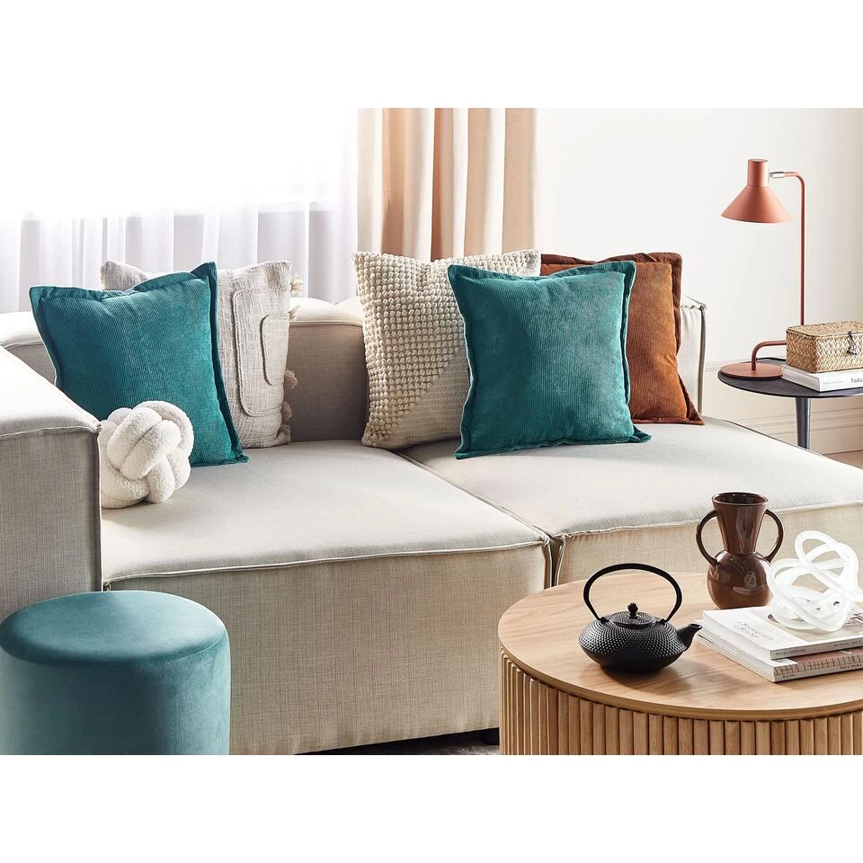 Set van decoratieve kussens. Versier je woon- of slaapkamer met deze set kussens. Dankzij hun tijdloze ontwerp zullen ze de perfecte aanvulling zijn op traditionele en moderne interieurs. Ze zijn gemaakt van corduroy aan de voorkant en effen stof aan de achterkant, en zijn aangenaam om aan te raken en duurzaam. De zachte vulling zorgt voor het gebruiksgemak. Ze zijn extreem onderhoudsvriendelijk, omdat ze een verborgen ritssluiting hebben waarmee je de hoezen kunt verwijderen.