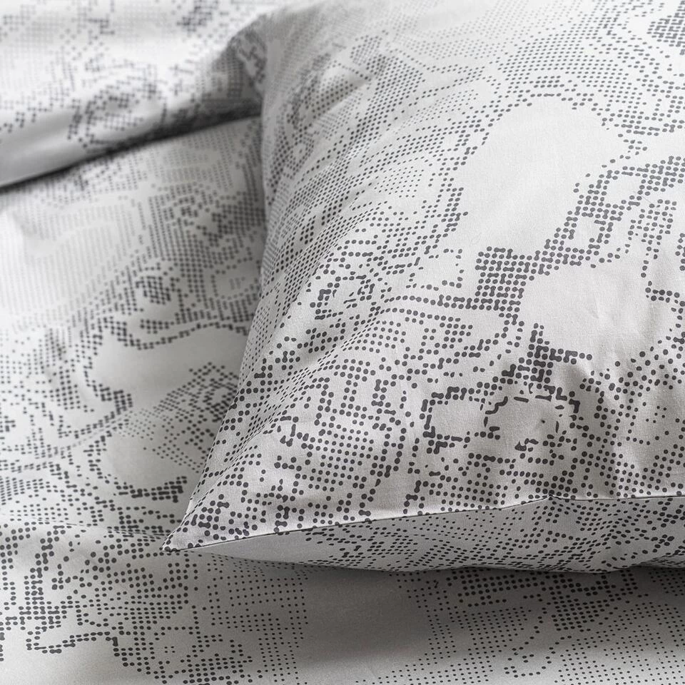 Het dekbedovertrek Charon van Cinderella heeft een all-over print uitgevoerd in een lichtgrijze kleur. Het ontwerp is opgebouwd uit pixels waardoor er een bijzonder patroon ontstaat. Hiermee zet je een strakke en unieke look neer in jouw slaapkamer.