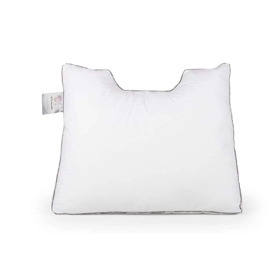 Cinderella Rondo heeft een speciaal model waardoor je hoofd en nek beter worden ondersteund dan met een ‘gewoon’ kussen. De ingestikte hoek aan de voorzijde van het kussen zorgt ervoor dat er meer vulling aan de voorkant van het kussen zit. De nek wordt daardoor beter ondersteund. De voorzijde heeft bovendien een slimme inkeping. Hierdoor blijft de ondersteuning intact, ook als je gedurende de nacht draait en keert.
