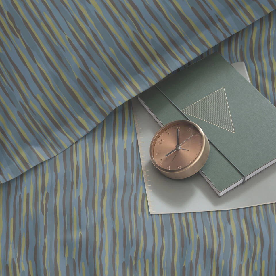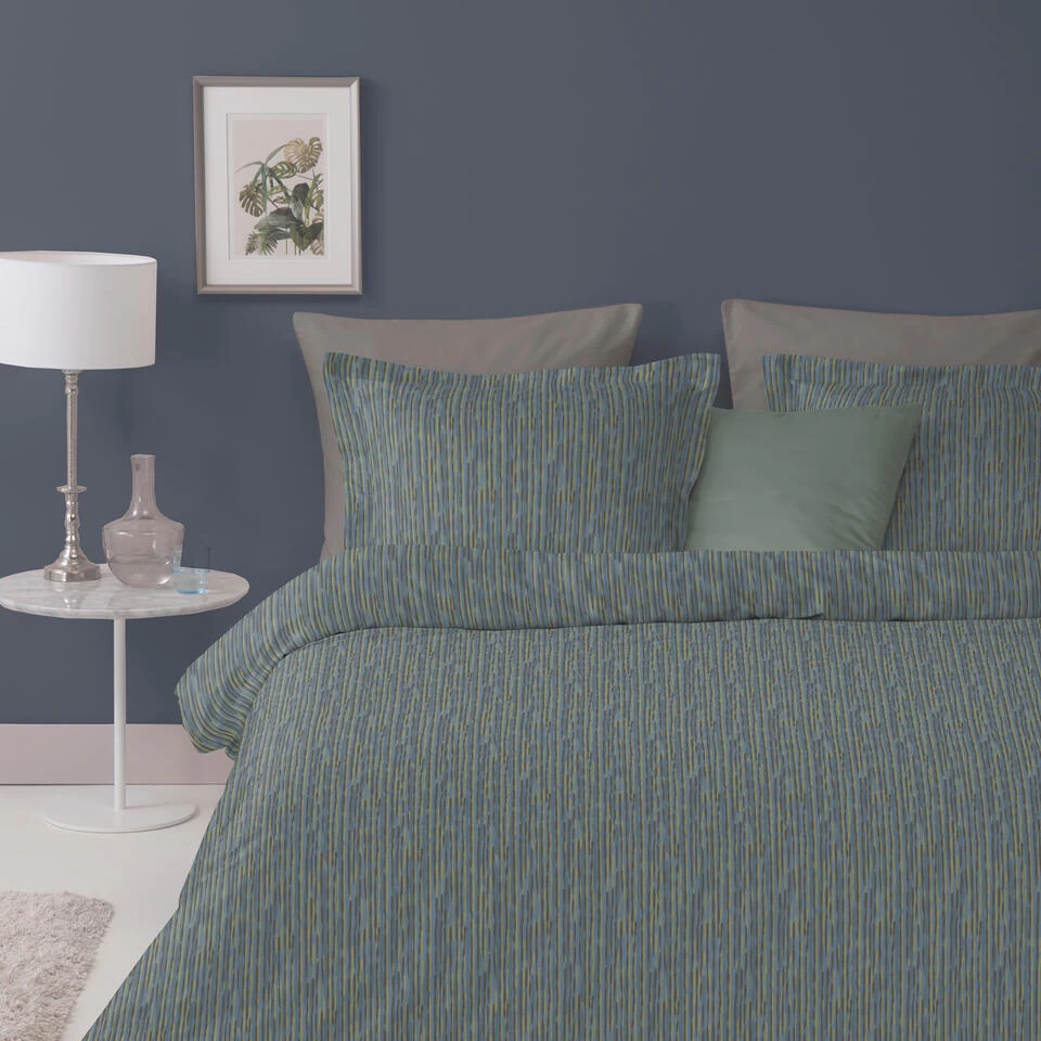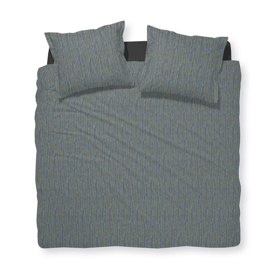 Het dekbedovertrek Flode van Damai bestaat uit een ontwerp van een bijzonder patroon waarbij onregelmatig strepen verticaal zijn doorgetrokken in verschillende kleuren. Vloeiende lijnen dat als water over het dekbedovertrek stroomt. Het geheel straalt iets rustgevends uit en in combinatie met de kleuren ‘Salvia Green’ of ‘Steel Blue’ is dit de sfeer waar we naar op zoek zijn in de slaapkamer.