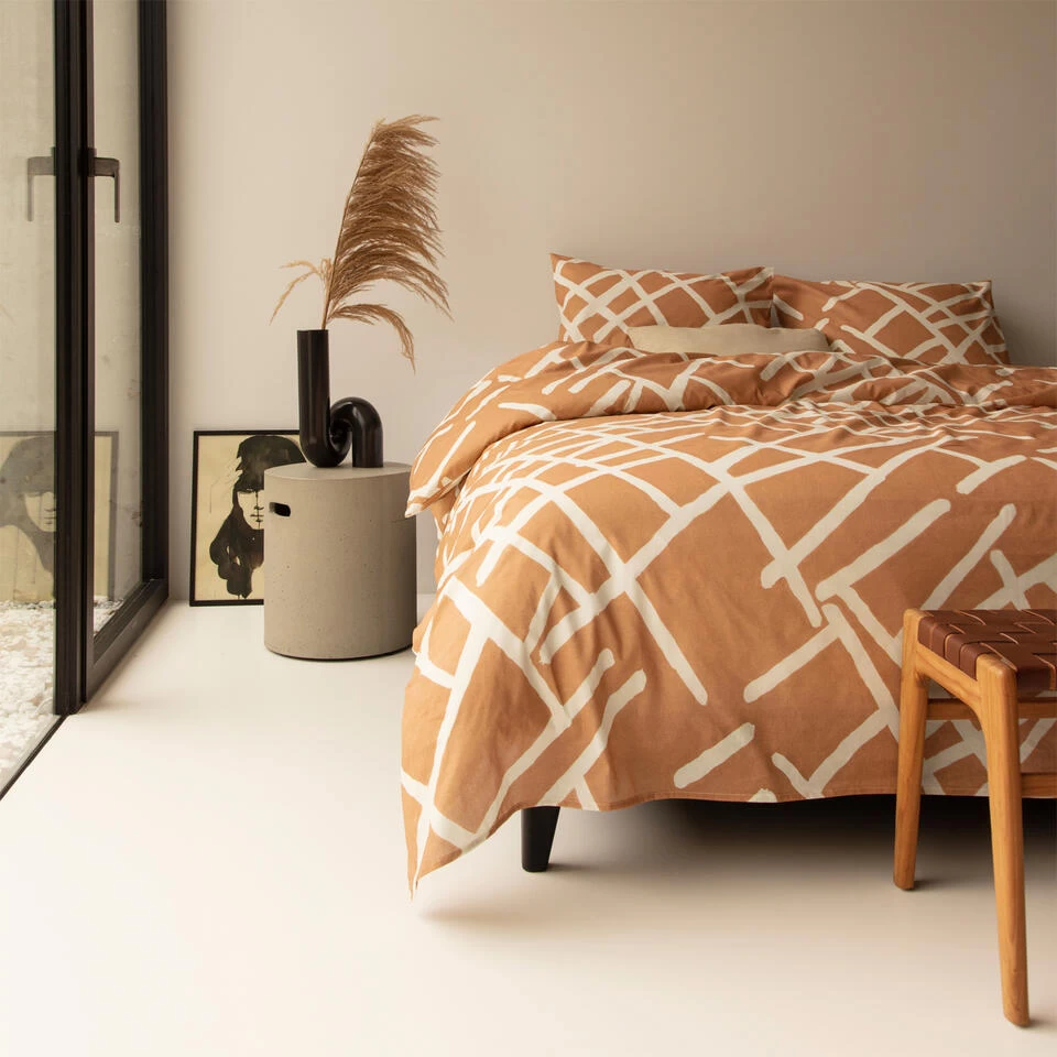 Dekbedovertrek Kline van Damai is als een kunstwerk; een ingrediënt waarmee je eenvoudig karakter en stijl kan toevoegen aan een woonruimte. Het heeft een grof en stoer patroon waarbij de ondergrond voorzien is van een canvas weefsel, uitgevoerd in smaakvolle en contrastrerende kleuren waarmee je een statement maakt in jouw slaapkamerstijl.