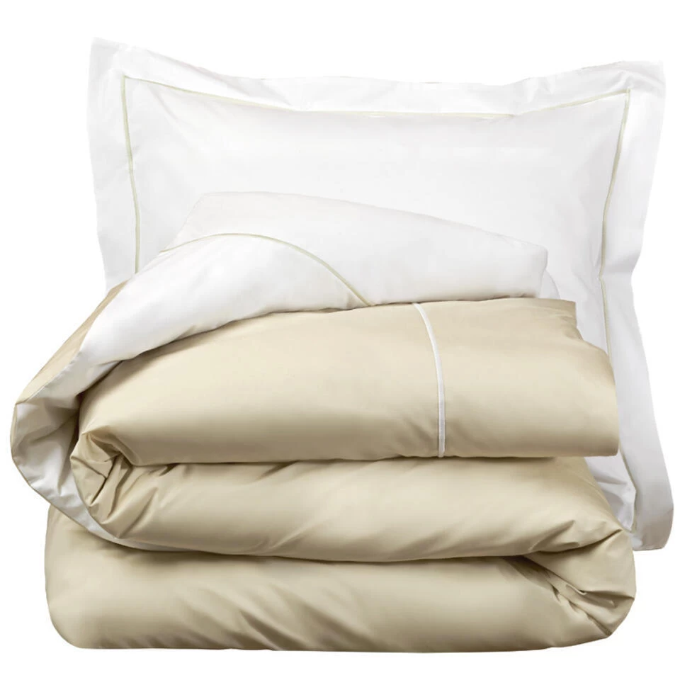 De Witte Lietaer dekbedovertrek katoen perkal, Bumblebee White / Beige Sand. Prachtig tweepersoons katoen perkal Lits Jumeaux met een hoge weefdichtheid, aan weerszijden voorzien van een geborduurde bies. Dit dekbedovertrek bestaat uit gekamd en gemerceriseerd katoen, dit verhoogt de gemiddelde vezellengte en zorgt zo dat het dekbedovertrek zijn kleur nóg beter behoudt, zijn maatvastheid verbetert en een hogere kwaliteit verkrijgt. De hoge weefdichtheid zorgt er ook voor dat de stof heel glad aanvoelt. De Witte Lietaer staat bekend om hun kwaliteitsproducten en rijke geschiedenis. Kortom, met een product van De Witte Lietaer koopt u een voortreffelijke ervaring.