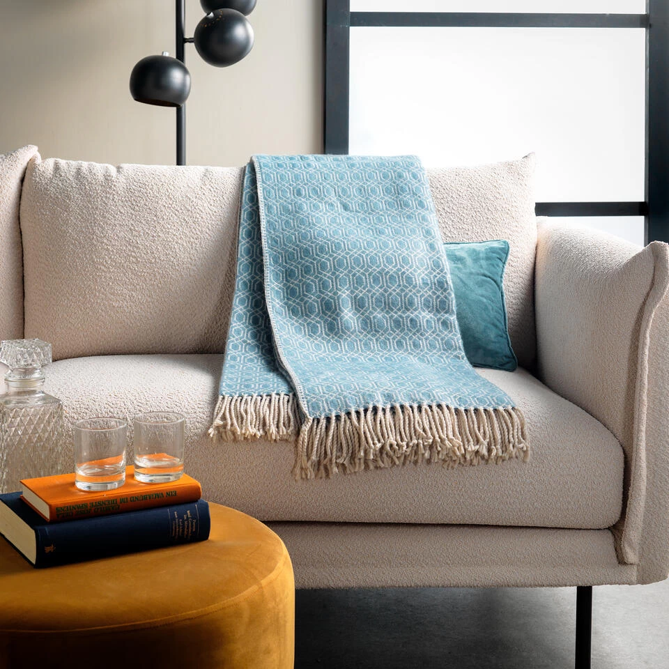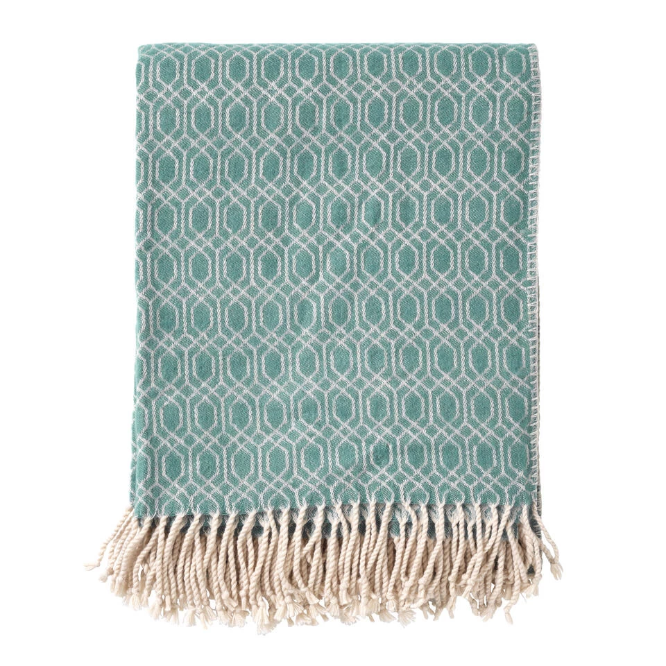 ELODIE – Plaid 140×180 Cm – Sagebrush Green – Lichtgroen & Beige – Franjes – Geo