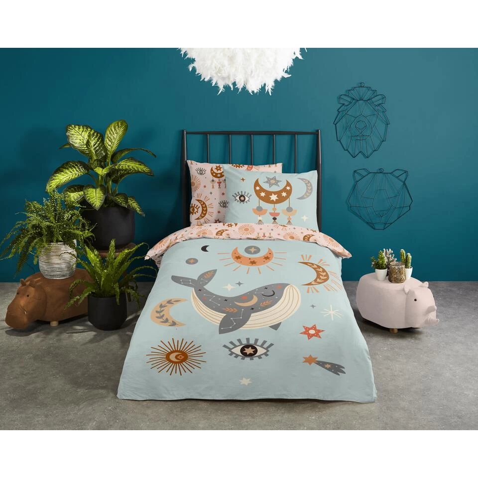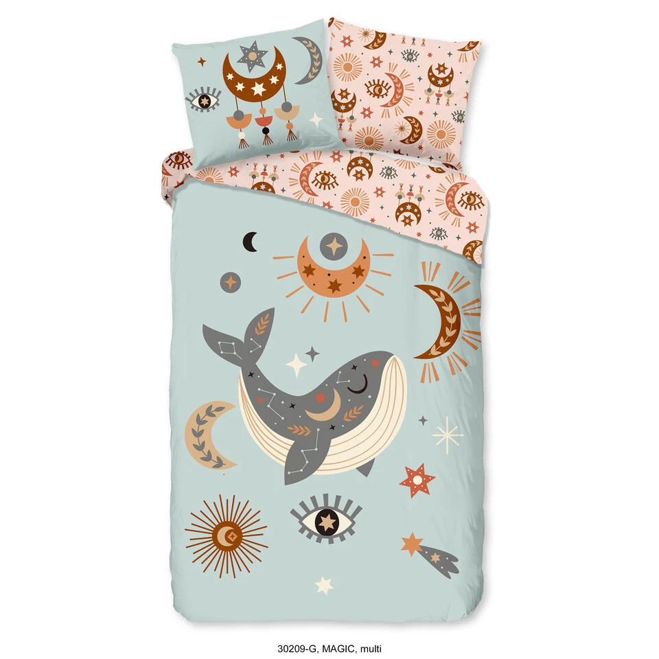 Dekbedovertrek “Magic” van Good Morning met walvis, in de kleur “Multi” is gemaakt van 100% Cotton. Deze kwaliteit is ademend, vocht absorberend en voelt zacht en soepel aan.