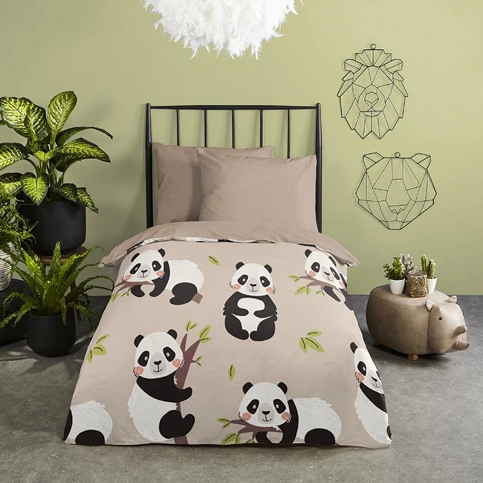 Good Morning Dekbedovertrek “Panda” – Zand – (120×150 Cm)