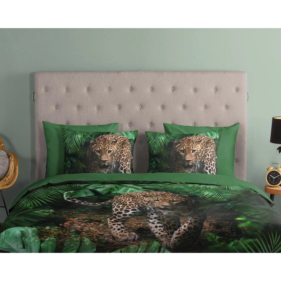 Dekbedovertrek “Youri” van Good Morning met luipaard, in de kleur “Groen” is gemaakt van 100% Cotton. Deze kwaliteit is ademend, vocht absorberend en voelt zacht en soepel aan.