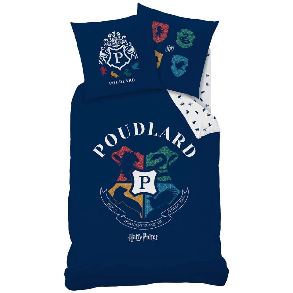 Harry Potter Dekbedovertrek, Poudlard. Prachtig dekbedovertrek met een mooi design van het logo van Zweinstein. Onder het logo pronkt trots de franse benaming van Hogeschool voor Hekserij en Hocus-Pocus: Poudlard. Leuk cadeau voor elke fan.