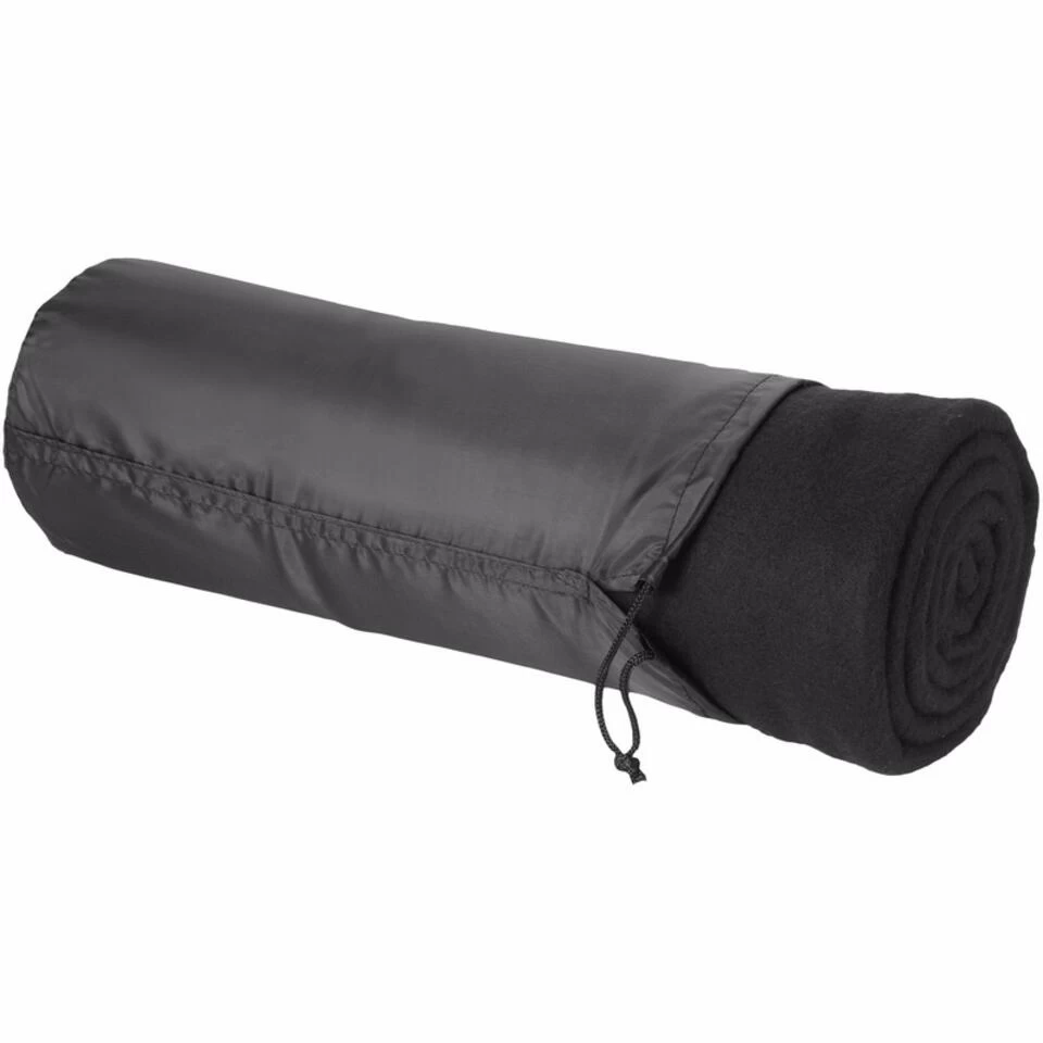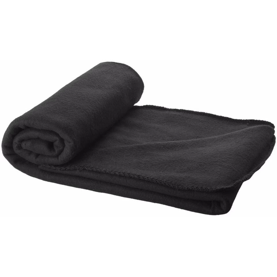 Fleece deken zwart 150 x 120 cm. Inclusief handige tas met trekkoord. Formaat: ongeveer 150 x 120 cm. Materiaal: 200 grams polyester.