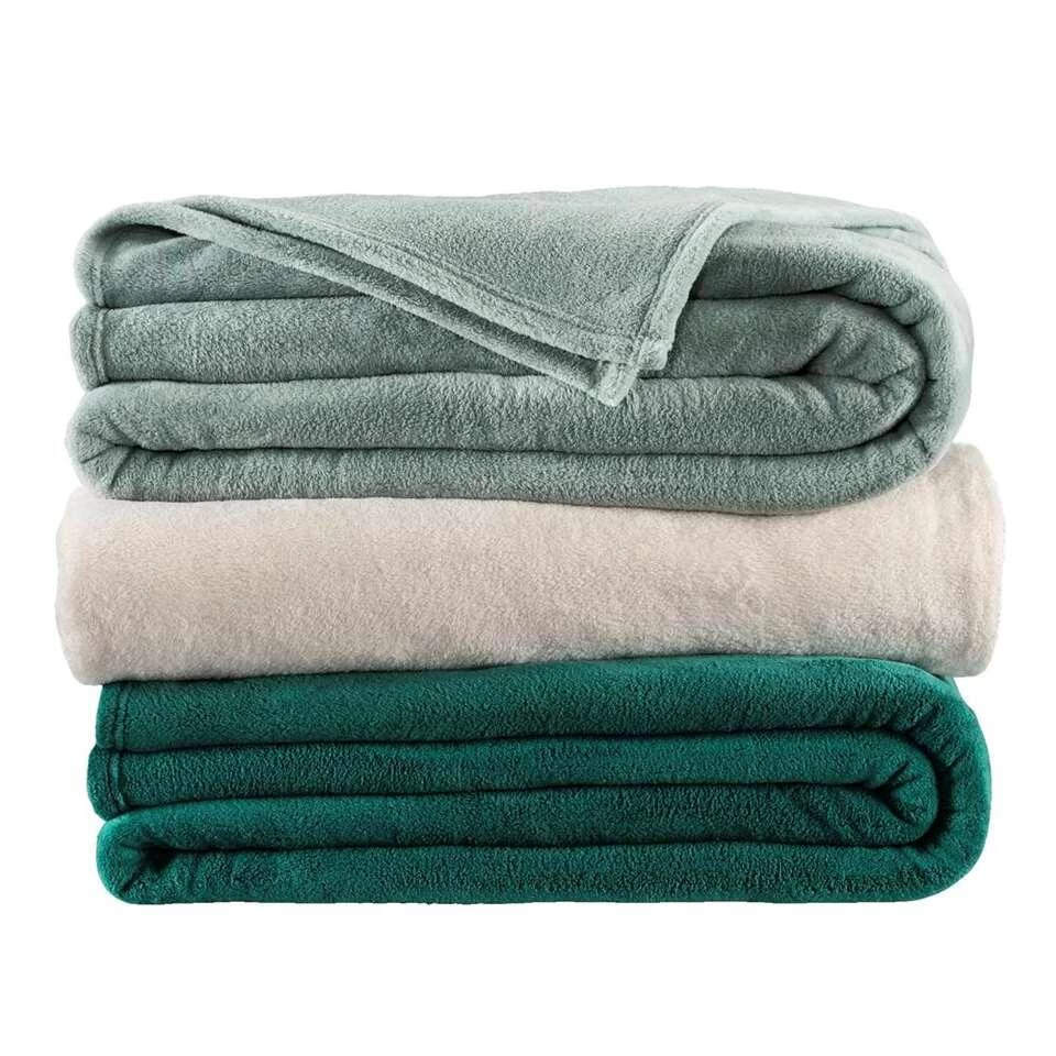 De plaid is blauwgroen van kleur en heeft een afmeting van 240×220 cm.Â