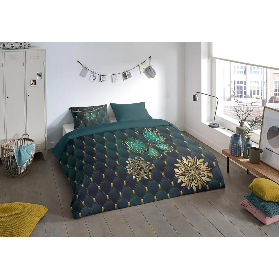 Dekbedovertrek “Lavanya” van Pure met vlinder, in de kleur “Petrol” is gemaakt van 100% Microfiber. Het is een prettige stof, gemaakt van synthetische garen maar vergelijkbaar met het natuurlijke materiaal katoen, doordat het zacht en soepel aanvoelt. Het is geschikt voor ieder jaargetijde en door de lichte glans heeft het een luxe uitstraling. Na het wassen is deze stof snel droog en kreukt niet tot nauwelijks waardoor strijken (vrijwel) niet nodig is. Ook beschermt het tegen bacteri’n, vuil en huisstofmijt