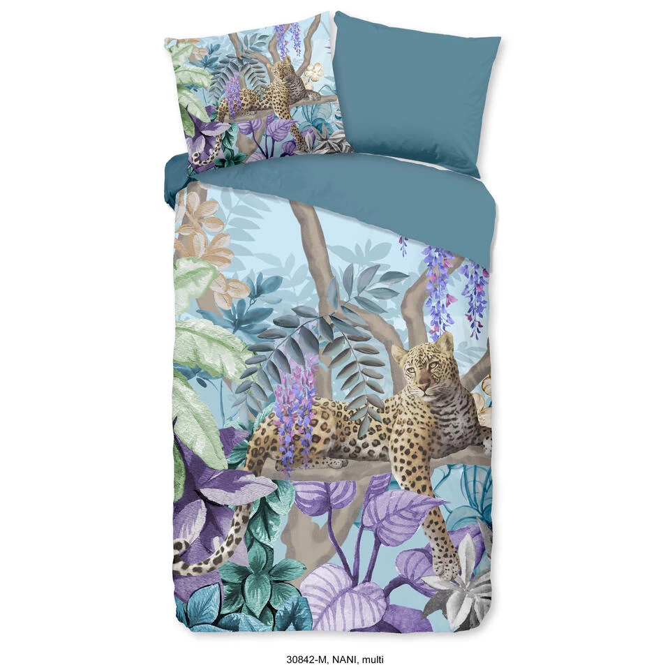 Dekbedovertrek “Nani” van Pure met jungle print, in de kleur “Multi” is gemaakt van 100% Microfiber. Het is een prettige stof, gemaakt van synthetische garen maar vergelijkbaar met het natuurlijke materiaal katoen, doordat het zacht en soepel aanvoelt. Het is geschikt voor ieder jaargetijde en door de lichte glans heeft het een luxe uitstraling. Na het wassen is deze stof snel droog en kreukt niet tot nauwelijks waardoor strijken (vrijwel) niet nodig is. Ook beschermt het tegen bacteri’n, vuil en huisstofmijt