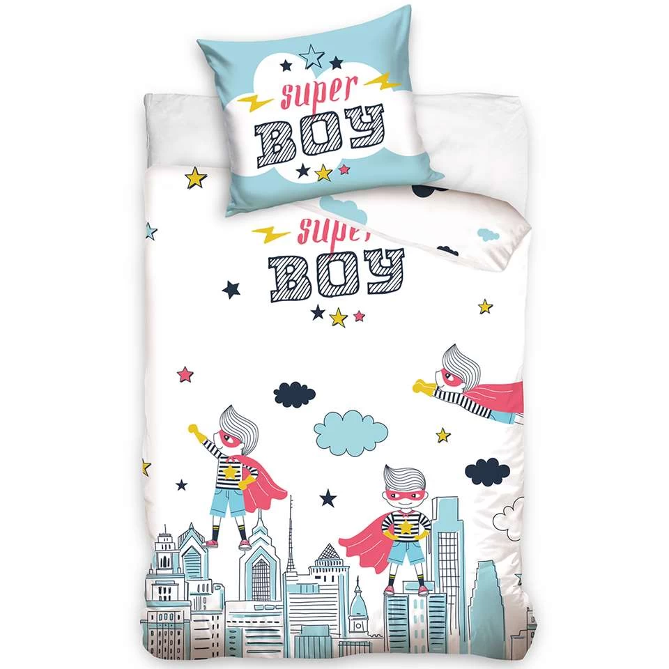 Super Boy Dekbedovertrek, Skyline Glow in the Dark. Droom jij over superhelden? Wil je er zelf één zijn? Dan is dit het ideale dekbedovertrek voor jou! Deze Super Boy is klaar om de wereld te redden! Een leuke dekbedovertrek voor de kleine superheld en met een leuk effect als je het licht uit doet; het overtrek geeft dan licht in het donker. Gemaakt van 100% katoen én met een extra grote kussensloop. Een fantastisch cadeau voor elke mini-held!