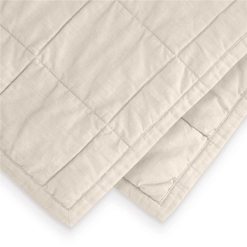 Het luxe plaid Luxury Touch heeft doorgestikte blokken en is licht gevoerd, dit geeft jouw slaapkamer een luxueuze uitstraling. De voorkant is gemaakt van een fijn slub katoen met linnen look waardoor deze een rijke uitstraling krijgt, de achterkant is gemaakt van katoen en dus heerlijk zacht.